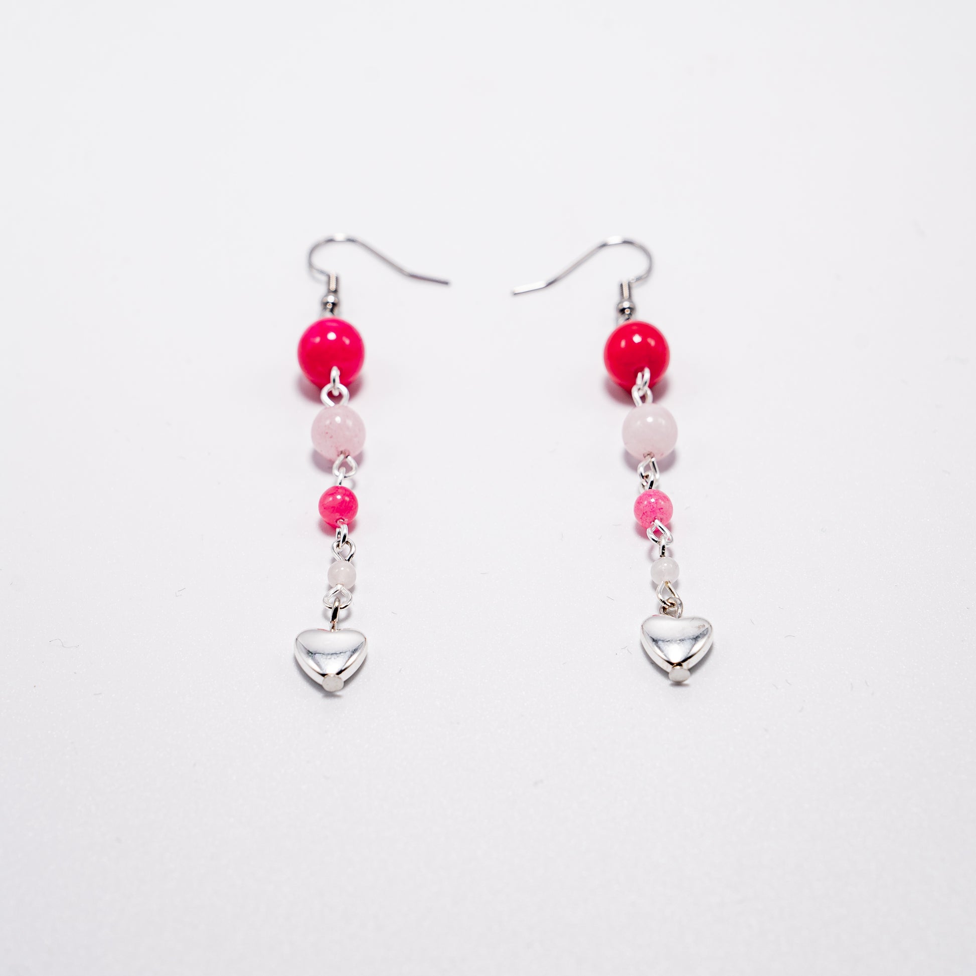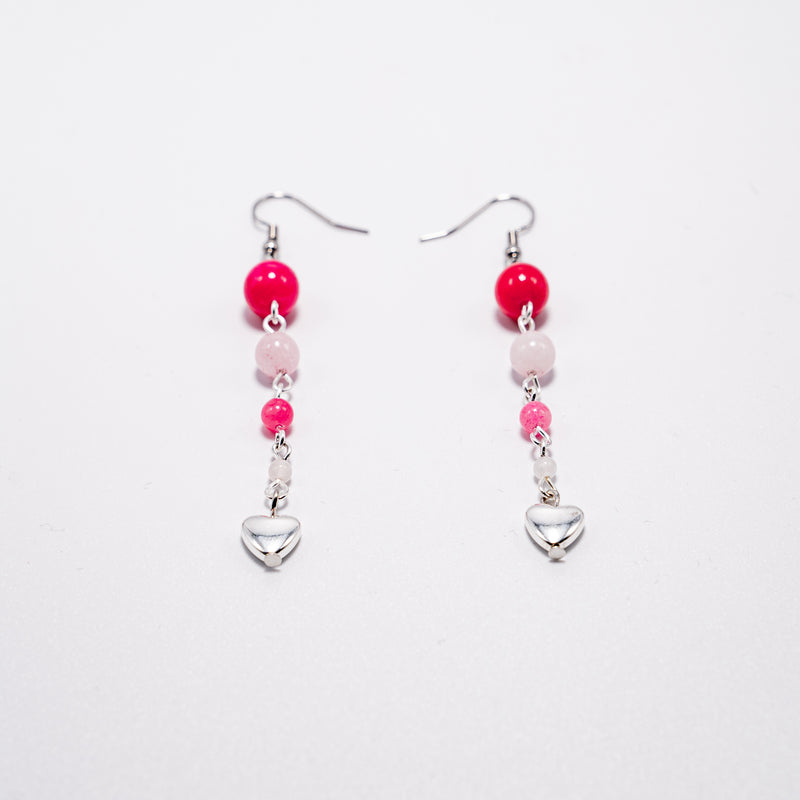 Uhani s kamnitimi perlami - ahat, rose quartz. Ročno sestavljeni uhani.