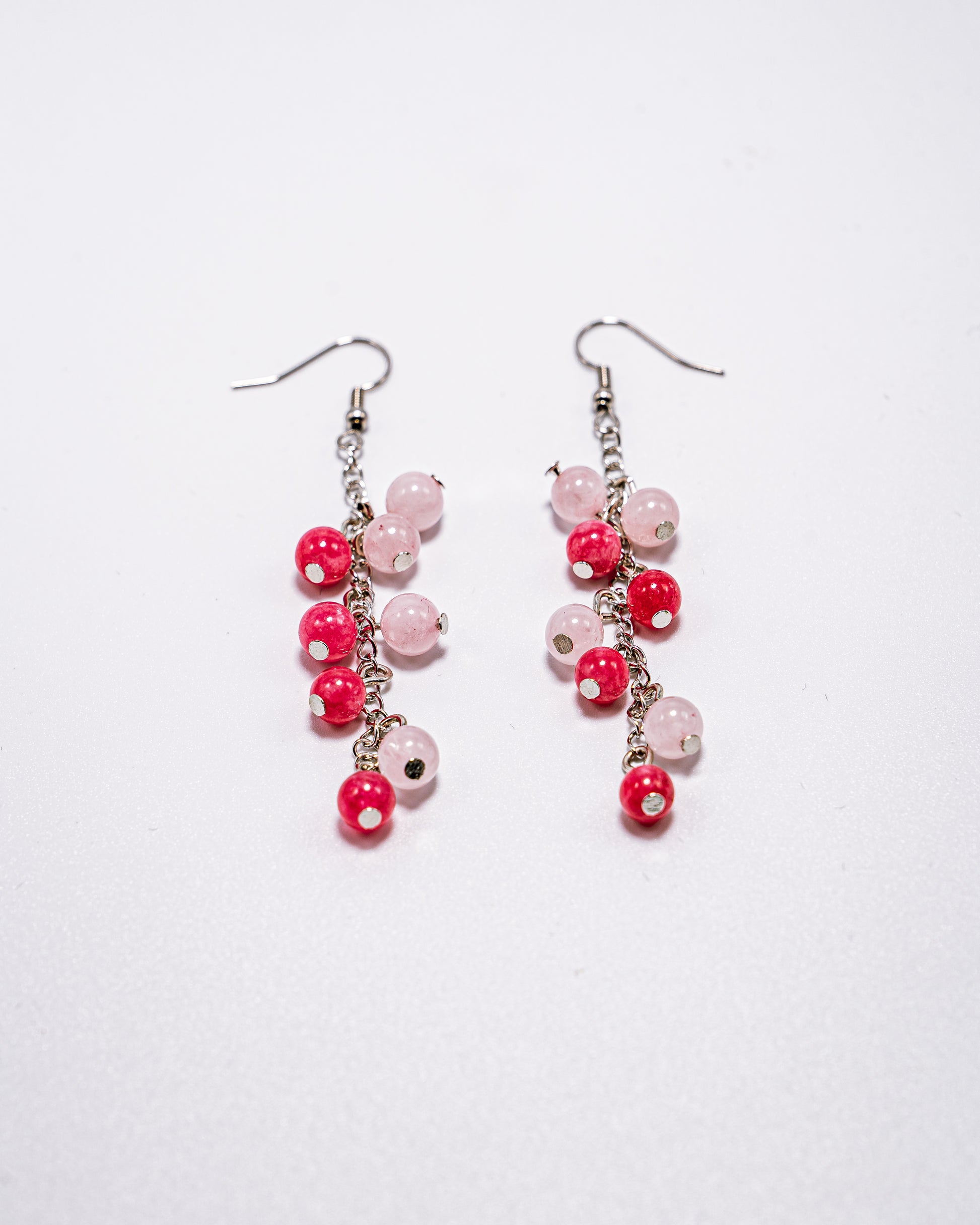 Uhani s kamnitimi perlami - ahat, rose quartz. Ročno sestavljeni uhani.